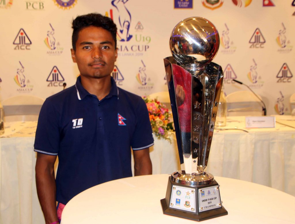काठमाडौं (हाम्रो खेलकुद) – श्रीलंकामा बिहीबार सुरु हुने एसीसी यू१९ एसिया कप ट्रफी बुधबार सार्वजनिक भएको छ । सार्वजनिक कार्यक्रममा नेपाली युवा टोलीका कप्तान रोहित कुमार पौडेल सहित बंगलादेश,पाकिस्तान,श्रीलंका,अफगानिस्तान,यूएई र कुवेतका लगायतका कप्तान सहभागि थिए ।