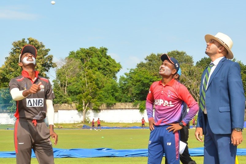 यूएईले टस जितेपछि नेपाललाई पहिलो ब्याटिङको लागि निम्त्याएको थियो । यूएईको त्यो निर्णय नेपालको लागि घातक सावित भयो । नेपालले दुवै ओपनर खाता नखोल्दै गुमाएको थियो । ओपनर रित गौतम इनिङको पहिलो बलमा नै क्याच आउट भएका थिए । मोहमद ताहिरको बलमा उनले अल्शन सरफुलाई क्याच थमाएका थिए ।