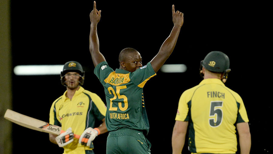 तीन स्पिनरका साथ उत्रेको दक्षिण अफ्रिकाका लागि २१ बर्षे रावडाले उच्च प्रदर्शन गरे । ७ ओभर बलिङ गर्दै मात्र १३ रन दिएर उनले ३ महत्वपूर्ण विकेट लिए । त्यस्तै वाइने पर्नेलले, इमरान ताहिर, आरोन फान्गिसोले समान २ र डेब्यू गरेका ताब्राइज साम्सीले १ विकेट लिएका थिए ।