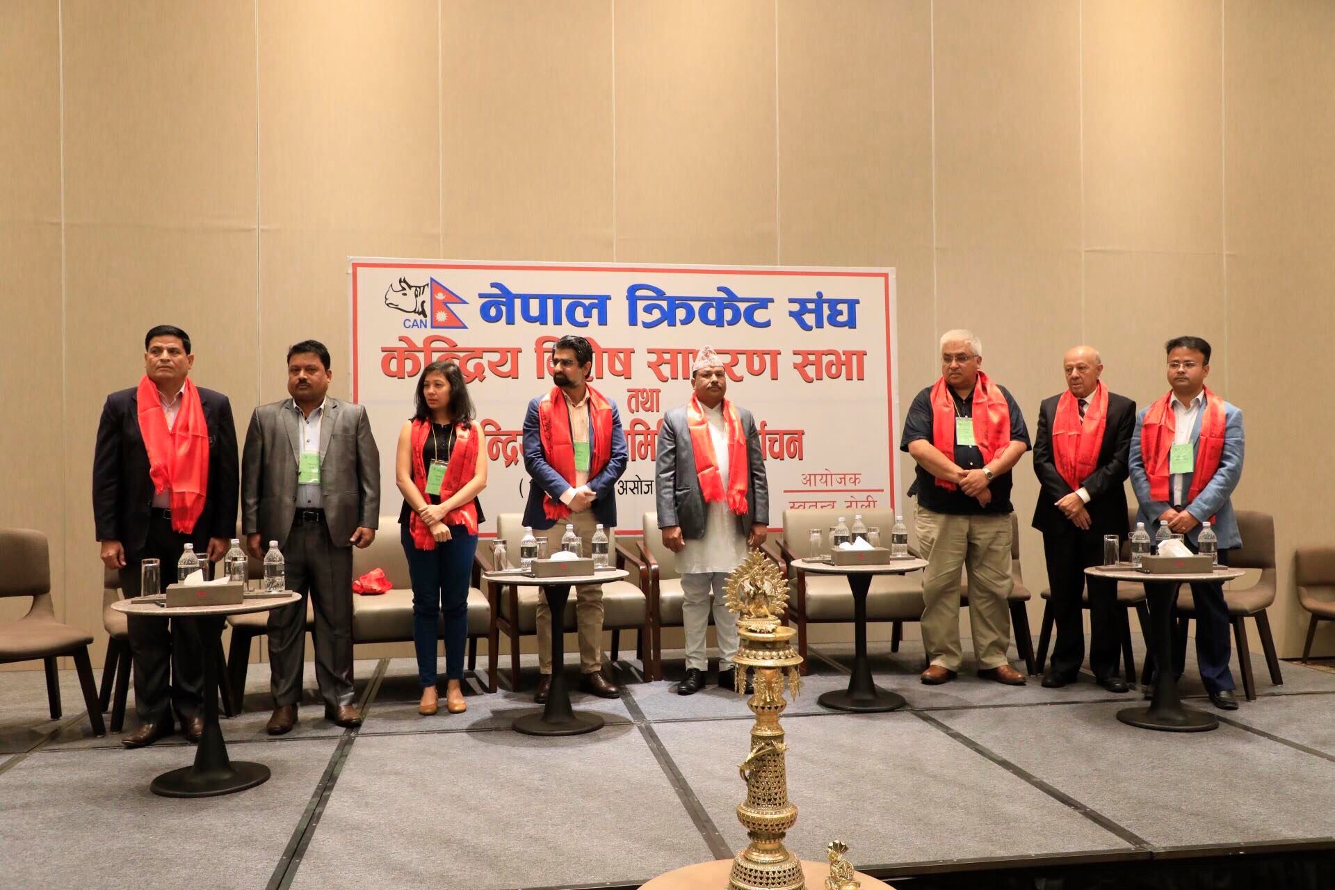काठमाडौं (हाम्रो खेलकुद) – नेपाल क्रिकेट संघ (क्यान) को केन्द्रिय विशेष साधरण सभा काठमाडौंमा सुरु भएको छ । साधरण सभामामा प्रमुख अथिति खेलकुद मन्त्री जगत बहादुर विश्वकर्मा रहेका छन् । विशेष अथितिमा राष्टिय खेलकुद परिषदका सदस्य सचिव रमेश कुमार शिलवाल रहेका छन् ।