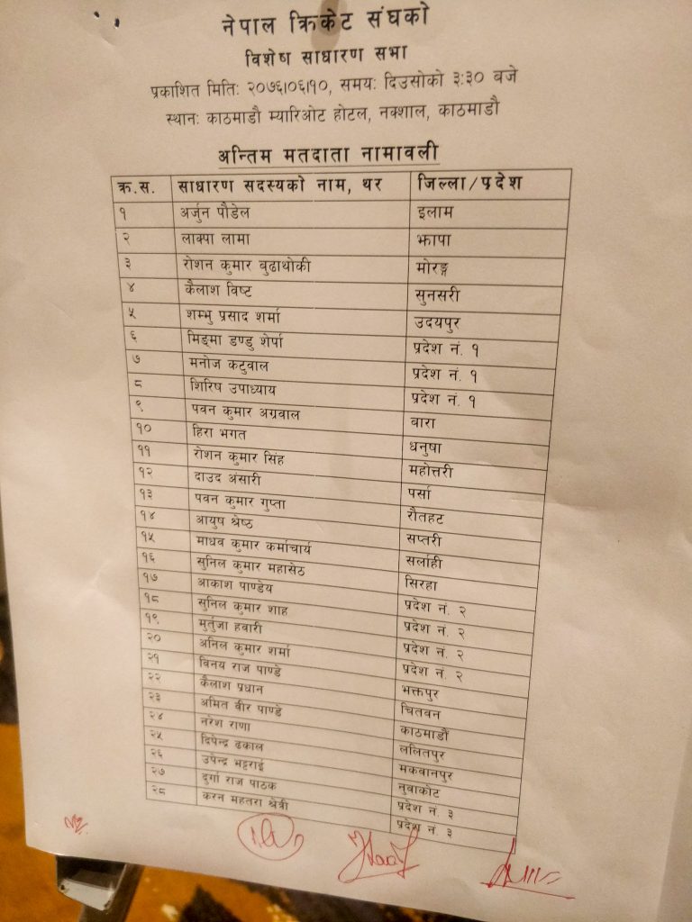 अध्यक्षका लागि चन्दले पूर्व अध्यक्ष विनयराज पाण्डेलाई ४४-१५ को भारी मतान्तरले पराजित गरेका हुन् । यस्तै उपाध्यक्षमा चन्द समूहकै राजुबाबु श्रेष्ठले मिङ्मा डन्डु शेर्पालाई पराजित गर्दै उपाध्यक्षमा निर्वाचित भए । सचिव पदमा अशोकनाथ प्याकुरेलले विनोदकुमार मैनालीलाई पराजित गरे । कोषाध्यक्षमा रोशन कुमार सिंहले उपेन्द्र भट्टाराईलाई हराए । यसअघि एकमात्र महिला सदस्यमा जयन्ती भट्ट निर्विरोध निर्वाचित भएकी छन् ।