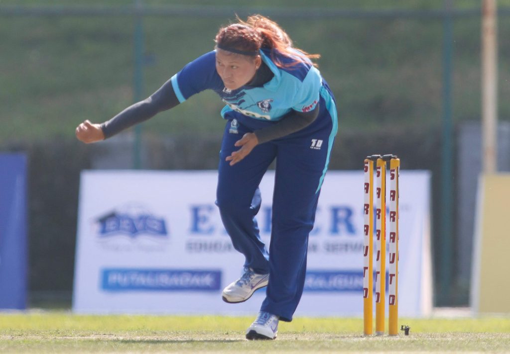 त्यस्तै अस्मीना कर्मचार्य २१ बलमा २ चौका सहित १६ रनमा अविजित रहिन् । पहिलो ओभरको चार बलमै ओपनर सोनु खड्का शून्यमा रन आउट भएकी थिन् । छैटौं ओभरको पाँचौ बलमा ओपनर ज्योती पाण्डे २२ रनमा क्याच आउट भइन् । अनुराधा चौधरीले सिता राना मगरबाट क्याच गराउनु अघि पाण्डेले १६ बलमा ४ चौका प्रहार गरिन् । दशौं ओभरको तेस्रो बलमा कप्तान सरिता मगरले डली भट्टलाई १२ रनमा कट एण्ड बोल्ड आउट गरिन् । पोखराका लागि सिता मगरले २ र अनुराधा चौधरीले १ विकेट लिइन्।