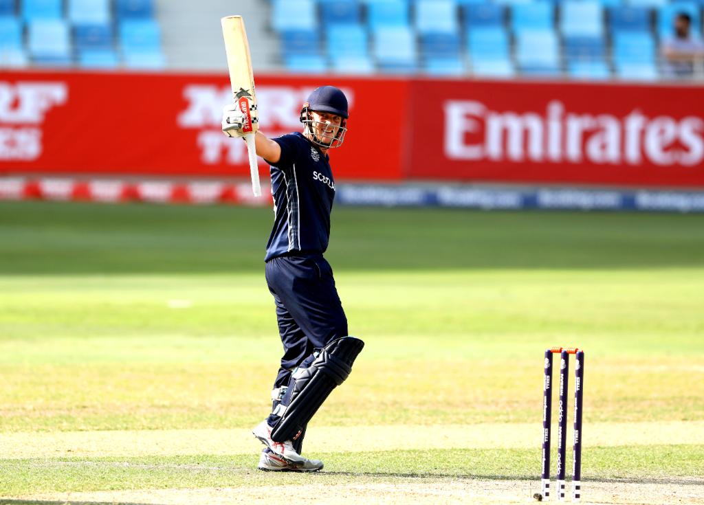 त्यस अघि टस जितेर ब्याटिङ थालेको स्कटल्यान्डले २० ओभरमा ६ विकेट गुमाउँदै १ सय ९८ रन बनाएको थियो । ओपनर जर्ज मुन्शेले ४३ बलमा २ चौका र ५ छक्का सहित सर्वाधिक ६५ रनको योगदान दिए । कप्तान काइल कोट्जर ३४,रिची बेरिन्गटन ४८ रन जोडे । रोहन मुस्तफाले २,जुनैद सिद्दीक अहमख राजा र जहुर खानले समान १ विकेट लिए ।