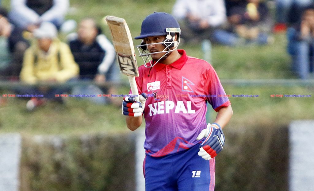 कुशल मल्ल १२ र प्रतिस जि.सी.५ रनमा आउट भए । आकाश चन्द र शेर मल्लले अन्त्यतिर आक्रामक ब्याटिङ गर्दै नेपाललाई विजयी स्कोरतर्फ अग्रसर गराएका थिए । आकाश ३० रन जोड्दै विकेटकिपरको हातबाट समातिए । शेर २८ रनमा नटआउट रहँदा सागर ढकालले १ रन जोडे ।