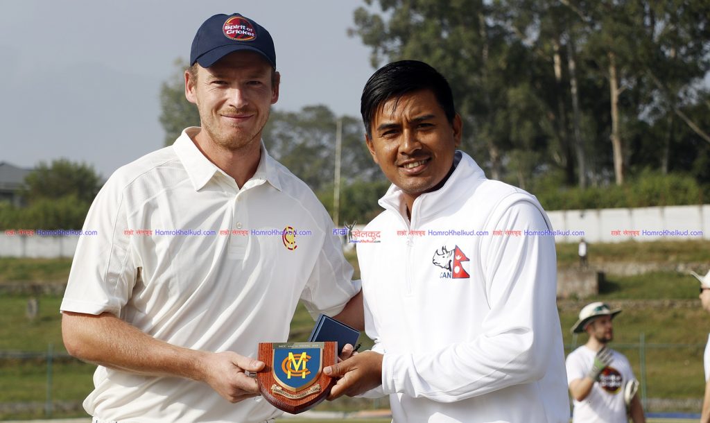 काठमाडौं(हाम्रो खेलकुद) – मेरिलेबोन क्रिकेट क्लब(एमसीसी) विरुद्ध प्रथम श्रेणीमा नेपाली राष्ट्रिय क्रिकेट टोलीले पहिला बलिङ गर्ने भएको छ । टियु क्रिकेट मैदानमा बुधबार नेपाली टोलीका कप्तान ज्ञानेन्द्र मल्लले टस जितेर पहिला फिल्डिङ गर्ने निर्णय लिएका हुन् ।