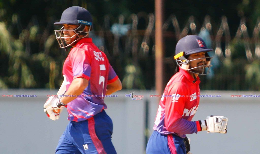 नेपालका सर्वाधिक अनुभवी खेलाडी शरद भेषवकर ६३ बलमा समान १ चौका र छक्का सहित ३५ रनमा खेलि रहेका छन् । उनलाई दीपेन्द्र सिंह ऐरीले २१ बलमा २ चौका सहित १७ रनमा साथ दिएका छन् । शरदले आठौं ओभरमा जीवनदान पाएका थिए । आदित्यको बलमा प्वाइन्टमा पार्थले उत्कृष्ट डाइभ दिँदै प्रयास गरेपनि शरदको क्याच छुटेको हो ।