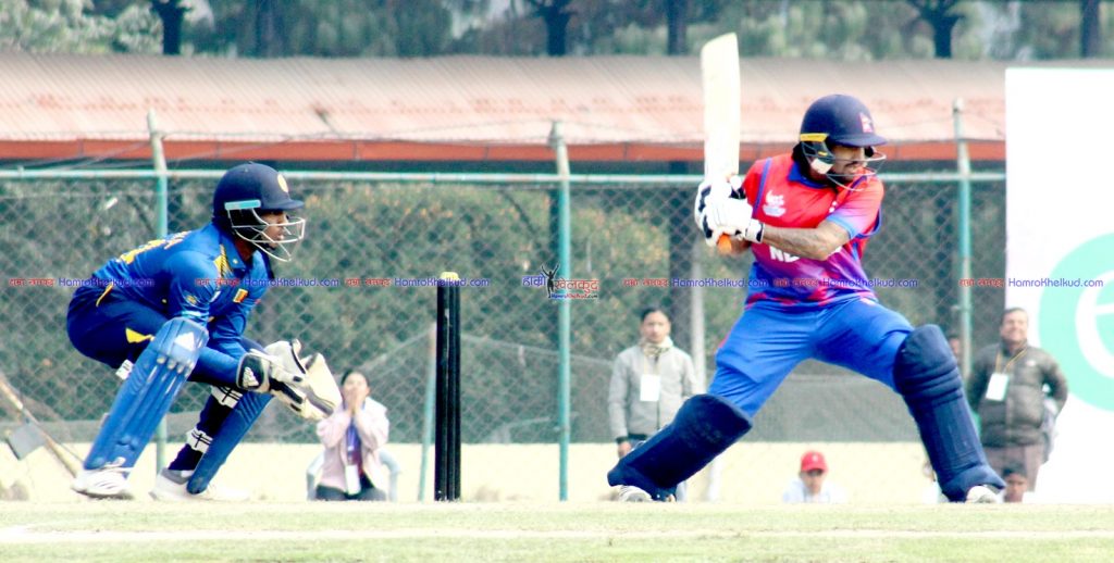 पवन सरार्फ १३ बलमा २ चौका र १ छक्का सहित २२ रनमा क्याच आउट भए । पाँचौ विकेटका लागि पवन र दीपेन्द्रले ६२ रनको साझेदारी गर्दै नेपालाई बलियो योगफलमा पुर्याएका थिए । करण केसी १ रनमा नट आउट रहे । पुर्व कप्तान तथा ओपनर पारस खड्कालाई काविष्का अन्जुलाले दोस्रो ओभरको दोस्रो बलमा विकेटकीपर निशान मदुशंकाबाट १ रनमा क्याच आउट गराए ।