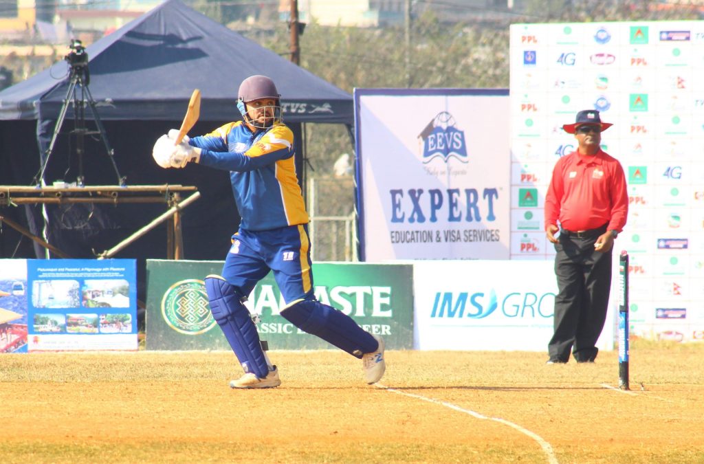 १७ औं ओभरको पाँचौ बलमा पुनितले कप्तान ज्ञानेन्द्रलाई जितेन्द्र मुखियाबाट क्याच गराएपछि अर्ध शतक बनाउन चुकेका थिए । ज्ञानेन्द्रले ३३ बलमा ३ चौका र २ छक्का प्रहार गरे । अन्तिम ओभरको पहिलो बलमा सुवोध भाटीलाई जितेन्द्र मुखियाले नोमनबाट १४ रनमा क्याच आउट गराए । उनले ९ बलमा १ चौका र छक्का प्रहार गरे । आदिल खान १३ र पवन सरार्फ ५ रनमा अविजित रहे ।