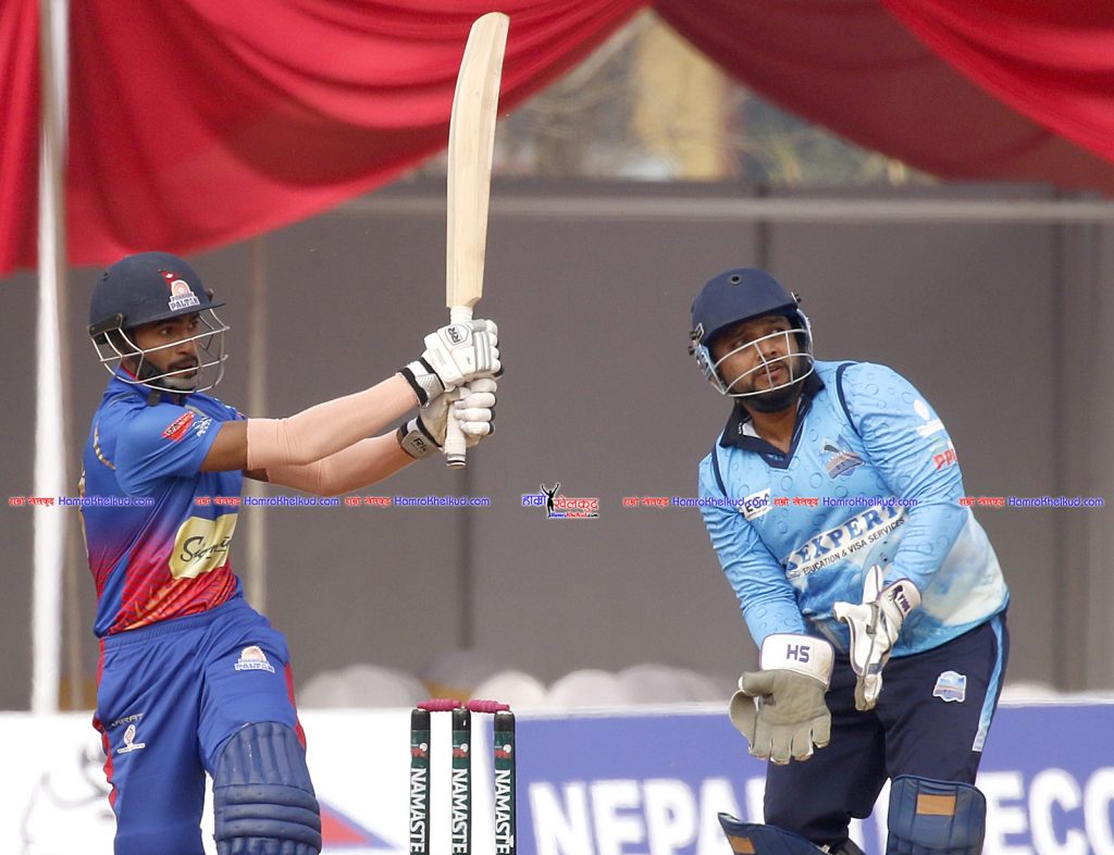 आठौं ओभरको पाँचौ बलमा स्पिनर अनिल खरेलले विकेटकीपर विनोद भण्डारीलाई १२ रनमा बोल्ड आउट गरे । दशौं ओभरको दोस्रो बलमा कुशल मल्ल २ रनमा रन आउट हुन पुगे । ११ औं ओभरको दोस्रो बलमा सागर ढकालले कृष्ण कार्कीलाई दीपकबाट १ रनमा क्याच आउट गराउँदा पोखरा ६८–६ को कमजोर अवस्थामा पुगेको थियो ।