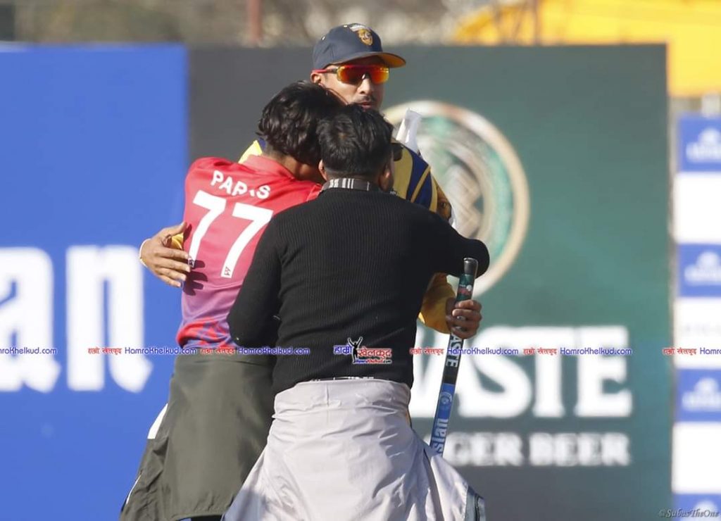 यतिकैमा खेल हेरिरहेका दुई समर्थक बाउन्ड्री लाइनभित्र छिरे र दौडिएर पारस नजिक पुगे । पारस उता खेलाडीसँग खुसी साट्दै अंगालो मार्दै थिए । यतिकैमा ७७ नम्बरको जर्सी लगाएका एक समर्थकले दुई खुट्टा मैदानमा टेके र पारसको दुबै खुट्टा ढोगे । खुट्टा छोएपछि पारसले समर्थक आएको थाहा पाए । त्यसअघि पारसलाई ती समर्थक मैदान छिरको पत्तो समेत थिएन ।