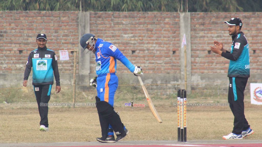 युवा स्पिनर शेर मल्लले १० ओभरमा ३ मेडन सहित ११ रन खर्चेर ५ विकेट लिए । विनोद लामाले ९ओभरमा ३ मेडन सहित २१ रन खर्चेर ४ विकेट लिए । बिक्रम ठगुन्नाले १ विकेट लिए ।