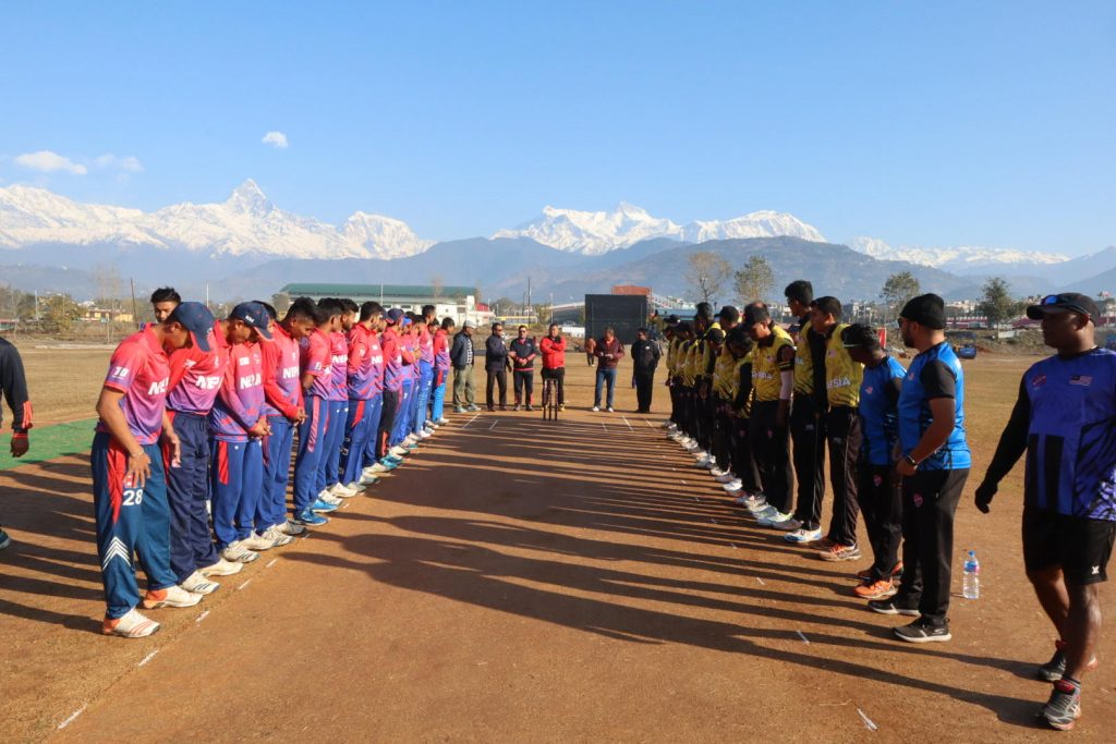 कप्तान ज्ञानेन्द्र मल्ल ४७ बलमा ५ चौका र २ छक्का सहित ५४ रनमा रिटायर्ड आउट भए । लोकेश बम २८ बलमा ४ चौका र २ छक्का सहित ३४ रनमा आउट भए । विनोद भण्डारी २१ , पवन सरार्फले १२ र सुसन भारीले १६ रन जोडे ।