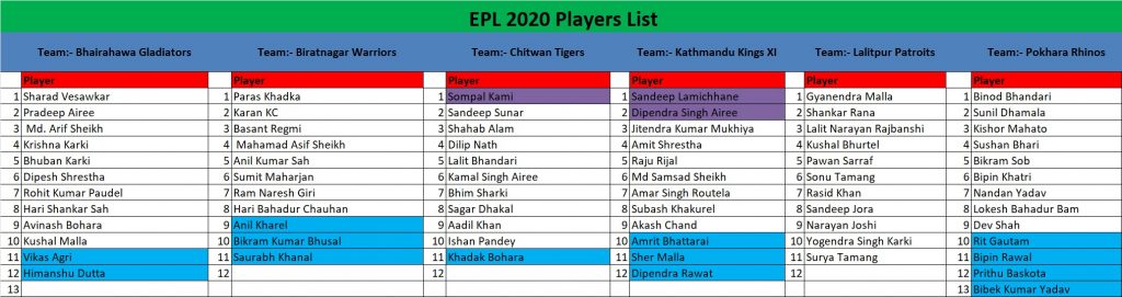 सम्पूर्ण नेपाली खेलाडी किनबेचपछिको अन्तिम सुची :