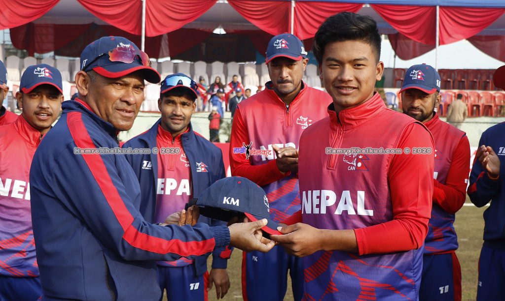 ज्ञानेन्द्र मल्ल (कप्तान), आरिफ शेख, दीपेन्द्र सिंह ऐरी, अभिनाश बोहरा, विनोद भण्डारी (विकेटकिपर), करण केसी, पारस खड्का, कुशल मल्ल, सुशन भारी, सुवास खकुरेल र सन्दीप लामिछाने