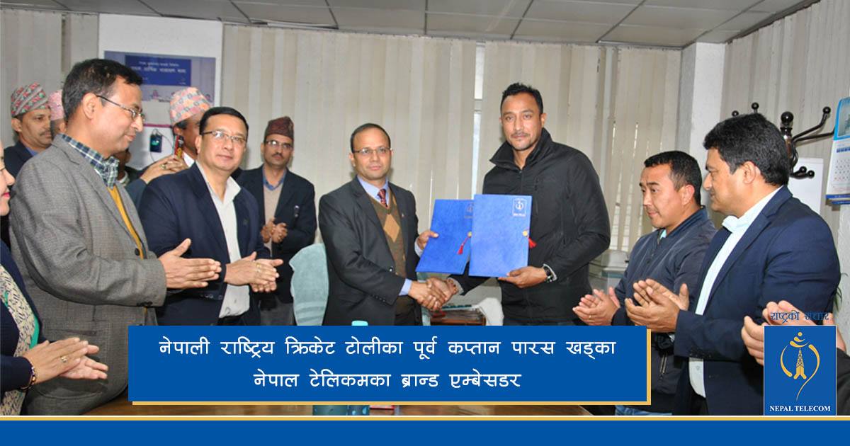 काठमाडौं (हाम्रो खेलकुद)– राष्ट्रिय क्रिकेट टोलीका पूर्व कप्तान पारस खड्का नेपाल टेलिकमको ब्रान्ड एम्बेसडर बनेका छन् । नेपाल टेलिकमका प्रबन्ध निर्देशक डिल्लीराम अधिकारी र पारसले मंगलबार सम्झौता पत्रमा हस्ताक्षर गरेका थिए । सम्झौता एक वर्षको रहने बताइएको छ ।