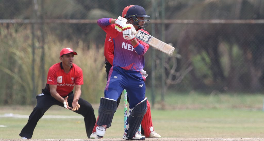 त्यसअघि थाईल्यान्डको बैंककमा रहेको टेर्डथाई क्रिकेट मैदानमा टस हारेर ब्याटिङ थालेको हङकङले निर्धारित २० ओभरमा ६ विकेट गुमाउँदै १ सय ५४ रन बनाएको थियो । खराब सुरुवात गरेको नेपाललाई स्पिनरहरुले उत्कृष्ट प्रर्दशन गर्दै राम्रो पुनरागमन गराएका थिए ।