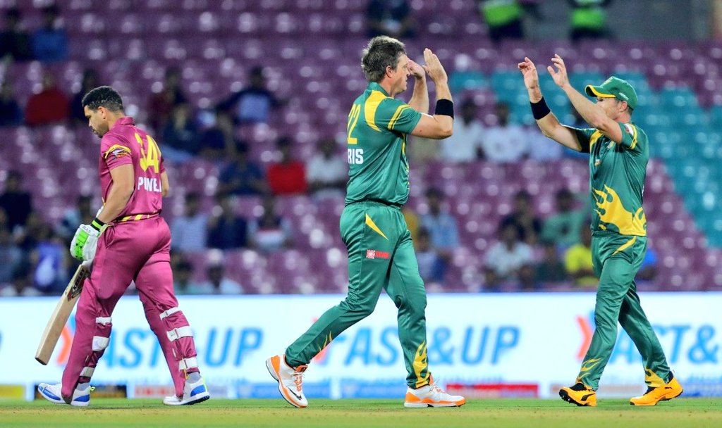 जितका लागि १ सय ४४ रनको विजयी लक्ष्य पछ्याएको दक्षिण अफ्रिका लेजेन्ड्सले १८.३ ओभरमा ४ विकेट लक्ष्य गुमाउँदै पुरा गर्यो । दक्षिण अफ्रिका लेजेन्ड्सको जितमा कप्तान जोन्टी रोड्स ४० बलमा ६ चौका र १ छक्का सहित ५३ रनमा अविजित रहे । त्यस्तै एल्बी मोर्केल ३० बलमा ६ चौका र २ छक्का सहित ५४ रनमा अविजित रहँदै सहज जित पक्का गराए ।