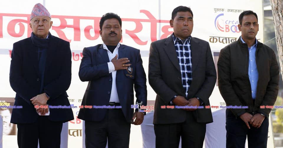 (तस्बिर : क्यानका पूर्व अध्यक्ष विनयराज पाण्डे, पूर्वकप्तान त्रय एलबी क्षेत्री, उत्तम कर्माचार्य र पवन अग्रवाल (दायाँबाट) )