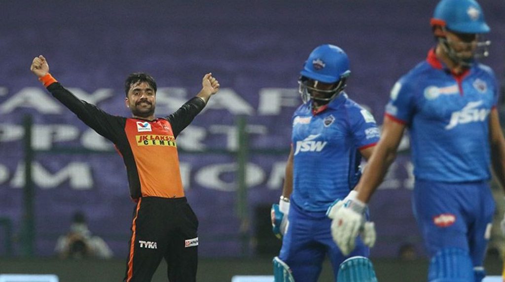 स्पिनर राशिदको १७ औं ओभरको चौथो बलमा ठूलो सट खेलेका विकेटकिपर ऋषभ पन्त डिप स्क्यिावर लेगमा प्रियम गर्गले ३२ रनमा क्याच आउट गराएपछि खेल थप रोमाञ्चक बनेको थियो । पन्तले २७ बलमा २ चौका र २ छक्का प्रहार गरे । १८ औं ओभरको अन्तिम बलमा टि नटराजनले मार्कस स्टोइनिसलाई ११ रनमा एलबिडब्लू आउट गरेपछि दिल्लीको जित टाढिएको थियो । अक्षर पटेल ५ रनमा बोल्ड आउट भए ।