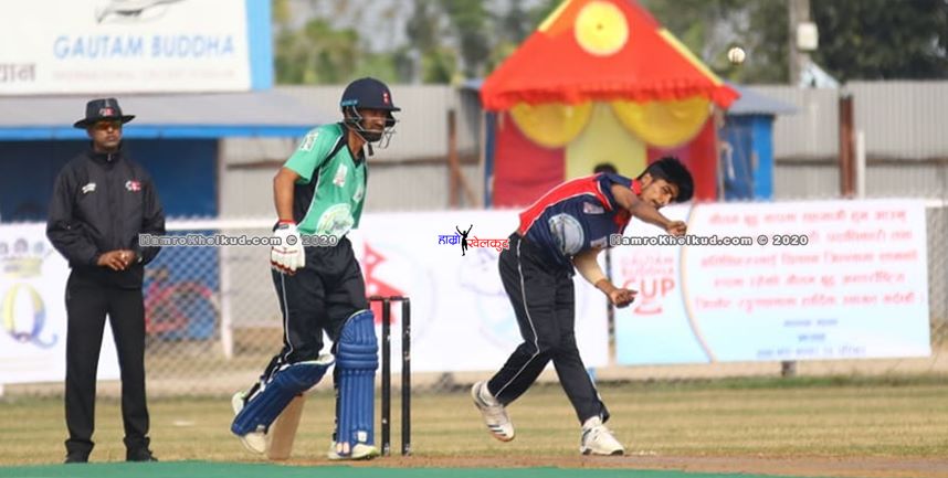भुवन कार्कीले ४ ओभरमा १६ रन खर्चेर २ विकेट लिए । कमलसिंह ऐरीले ४ ओभरमा ४९ रन खर्चेर २ विकेट लिए । अभिनाश बोहराले ४ ओभरमा १२ रन खर्चेर २ विकेट लिए । जितेन्द्र मुखियाले ३.४ ओभरमा ११ रन खर्चेर २ विकेट लिए ।