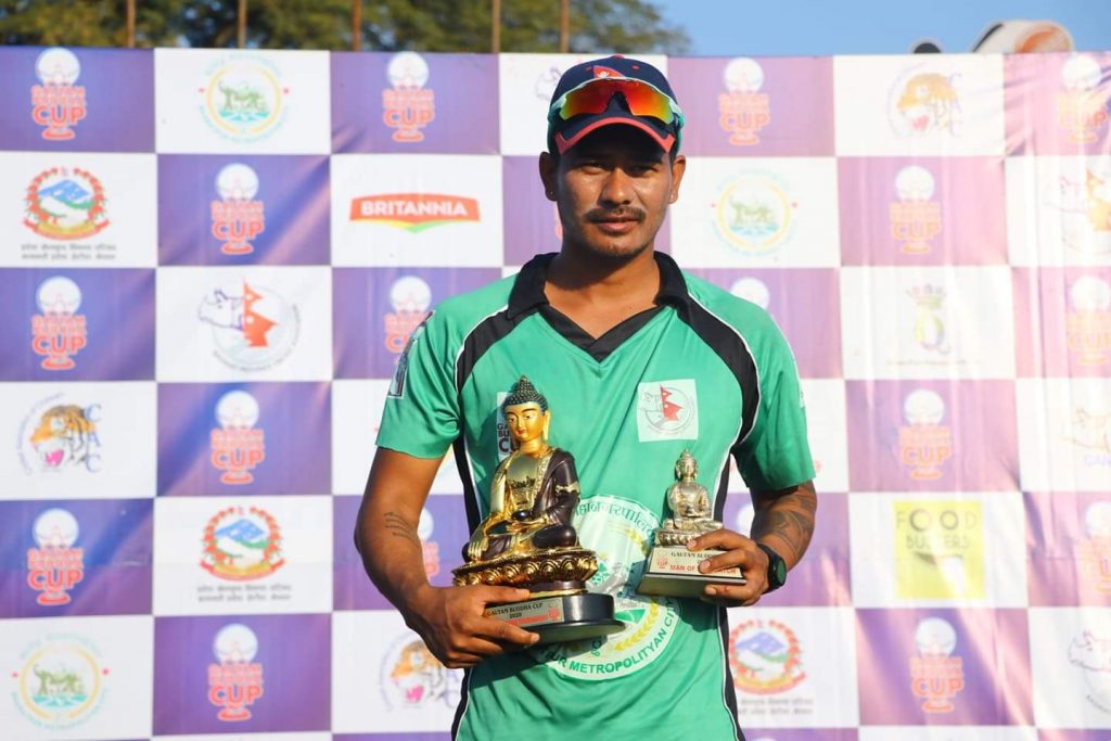 राप्तीका ओपनर कुशल भुर्तेल सर्वोत्कृष्ट ब्याट्सम्यान घोषित भएका छन् । भुर्तेलले ३ खेलमा १ अर्ध शतक सहित १ सय १० रन बनाएका थिए । भुर्तेलले २५ हजार रुपैयाँ प्राप्त गरे । प्रतियोगिता सर्वाधिक छक्का प्रहार गर्ने अवार्ड पनि कुशल भुर्तेलले पाए । भुर्तेलले ३ खेलमा १० छक्का प्रहार गरे ।