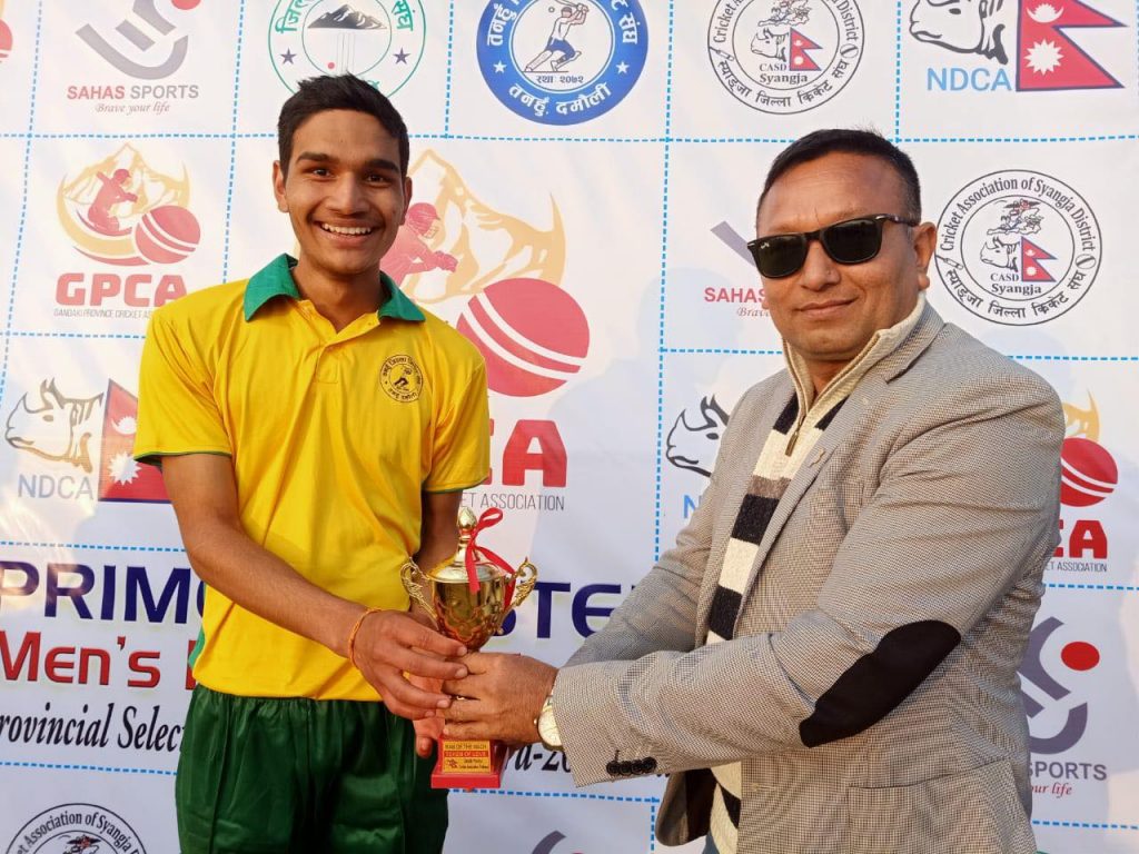 तनहुँका ओपनर समिर कंडेलले २६, दीपेश १६, प्रवेश खड्का ११, करण १७ र चन्द्रकान्त पौडेलले १५ रन बनाए । स्याङ्जाका अशोश श्रेष्ठ र सुरज गुरुङले समान ३, विष्णु पान्डे २, सुरज गौतम र मिलन लुइटेलले समान १ विकेट लिए ।