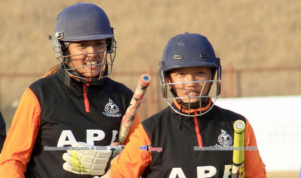 जितको लागि ७३ रनको सामान्य लक्ष्य पछ्याएको एपिएफले १३.१ ओभरमा २ विकेट गुमाउँदै पूरा गरे । एपिएफकी ओपनर ज्योती पान्डे ४० बलमा ४ चौका सहित सर्वाधिक ३० रनको योगदान दिइन् । सरिता मगर ६ र इन्दु बर्मा १ रनमा अविजित रहिन् । कप्तान सीता राना मगर ३० बल खेल्दै १ चौका सहित १८ रनमा आउट भइन् । कविता गौतम र सरस्वती कुमारी चौधरीले १–१ विकेट लिइन् ।