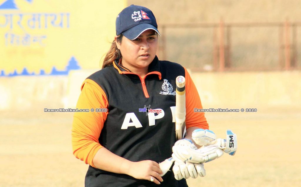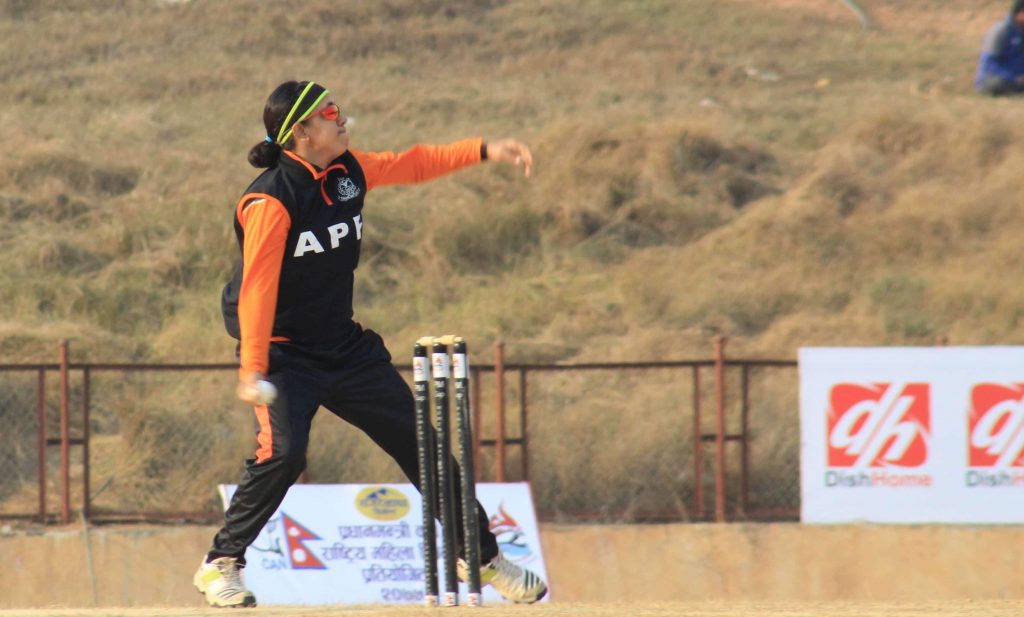 त्यसअघि देउखुरी क्रिकेट मैदानमा टस जितेर पहिला ब्याटिङ रोजेको एपिएफले निर्धारित २० ओभरमा ४ विकेट गुमाउँदै १ सय २२ रन बनाए । एपिएफकी ओपनर ज्योती पान्डेले सर्वाधिक ४९ रनको योगदान दिइन् । १९ औं ओभरको पहिलो बलमा नेरी थापाले बोल्ड आउट गनुअघि ५४ बलमा १ चौका प्रहार गरिन् ।