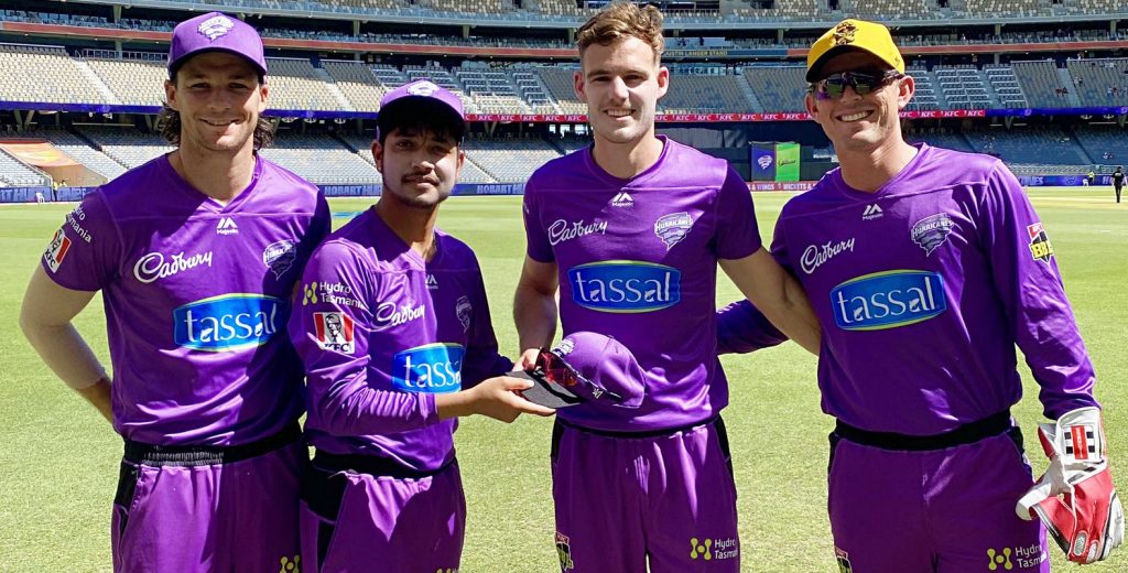 होबार्टका डार्सी सर्टले ४ ओभरमा २६ रन खर्चेर ३ विकेट लिए । सन्दीप लामिछानेले ४ ओभरमा २३ रन खर्चेर १ विकेट लिए ।