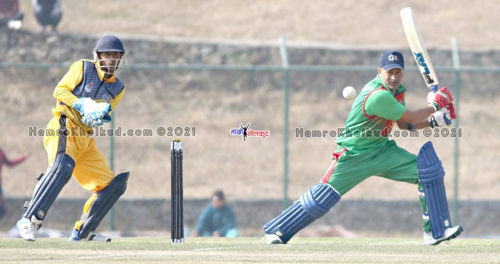 दीपक डुम्रे ४५ बलमा ४ चौका सहित २६ रनमा क्याच आउट भए । अविषेक थापा ९, विष्णु पान्डे १२, अमृत गुरुङले १, विशाल पौडेलले २ र सुबास भण्डारी शून्यमा क्याच आउट भए ।