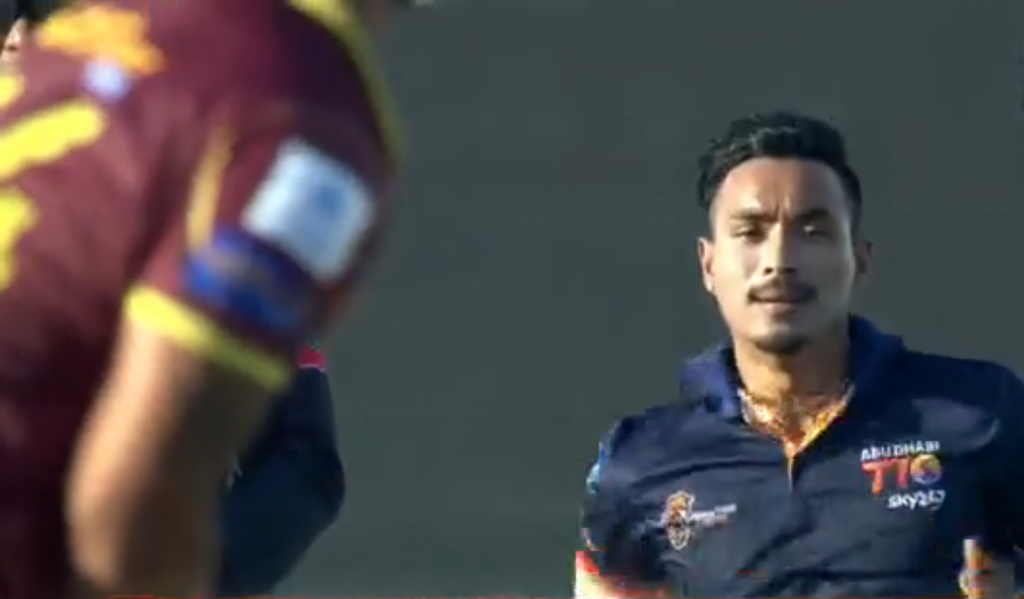 चौथो बलमा एक रन दिए । चौथो योर्कर बलमा एक रन बटुलेका थिए । पाँचौं बलमा उनले दुई रन दिएका थिए । त्यसपछि वाइड फाले । अन्तिम बलमा सोमपाललाई डिप मिडविकेटमा छक्का प्रहार गरेका थिए ।