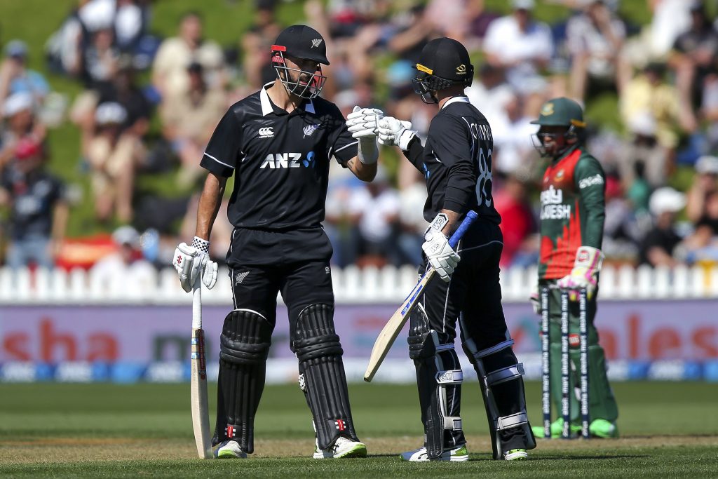 त्यसअघि वेलिंग्टनमा जितेर पहिला ब्याटिङ थालेको न्युजिल्यान्डले निर्धारित ५० ओभरमा ६ विकेट गुमाउँदै ३ सय १८ रन बनाएको थियो । न्युजिल्यान्डका देभन कन्वेले १ सय १० बलमा १७ चौका सहित १ सय २६ रनको उत्कृष्ट शतकीय इनिङ खेले । डर्याल मिचेल ९२ बलमा ९ चौका र २ छक्का सहित १ सय रनमा अविजित रहे । यी दुबै ब्याट्सम्यानको ओडिआई करिअरमा पहिलो शतक प्रहार गरेका हुन् । कन्वेले ४३ औं ओभरको पाँचौं बलमा तस्किन अहमदलाई चौका प्रहार गर्दै ९५ बलमा करिअरको पहिलो ओडिआई शतक प्रहार गरेका थिए । मिचेलले इनिङको अन्तिम बलमा दुई रन बटुल्दै शतक पूरा गरेका थिए ।