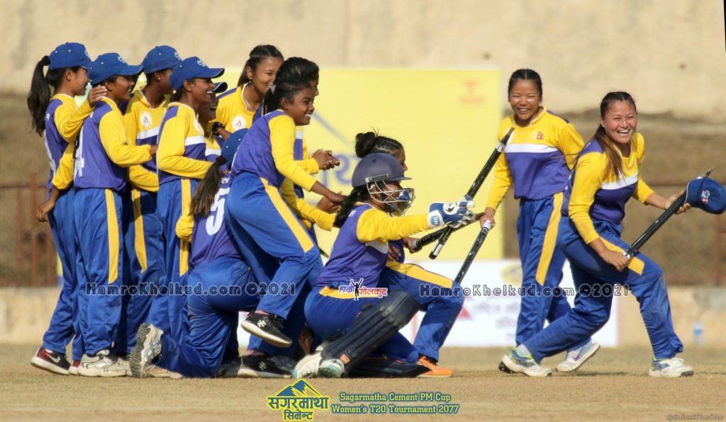 प्रदेश-१ को टोली : रुविना क्षेत्री बेलबासे (कप्तान), काजल श्रेष्ठ (उपकप्तान तथा विकेटकिपर), अप्सरी बेगम, रोमा थापा, संगीता राई, सबनम राई, ज्योति दनवार, निंग्मा तामाङ, निशा शाह, लकिता राजबंशी, अलिशा खडिया, स्मृति कटुवाल, प्रज्ञा कटुवाल र टिका शाह ।
