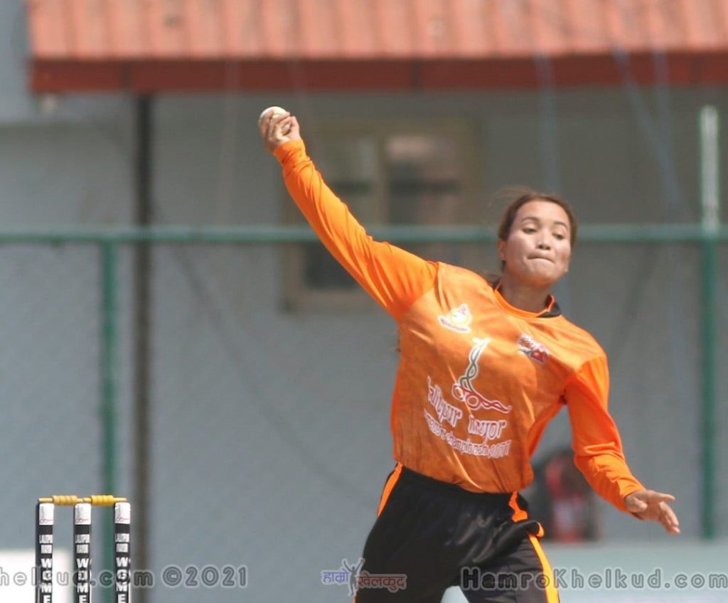 बिनुले सुमन खतिवडालाई ३ रनमा बोल्ड आउट गरेपछि ललितपुरको बलियो योगफलको सम्भावना टाढिएको थियो । बिनुले कन्चन र अस्मिना कर्माचार्य २ रनमा आउट गरेपछि ललितपुर ५०–७ को खराब अवस्थामा पुगेको थियो । एपिएपकी अनुभवी स्पिनर बिनु बुढामगरले ४ ओभरमा ११ रन खर्चेर ४ विकेट लिइन् । रेखा रावलले ४ ओभरमा १ मेडन सहित २१ रन खर्चेर २ विकेट लिइन् । सुमन विष्ट, करुणा भण्डारी र सीता रानामगरले १–१ विकेट लिए ।