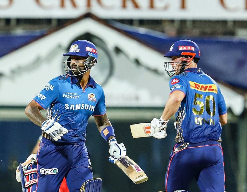 दोस्रो विकेटका लागि लिन र सूर्यकुमार यादवले ४४ बलमा ७० रनको साझेदारी गर्दै इनिङ उकासेका थिए । तीव्र गतिका बलर काइल जामिसनको ११ औं ओभरको अन्तिम बलमा सूर्य एज लागेर विकेटकिपर एवि डि भिलियर्सबाट ३१ रनमा समातिन हुन पुगे । सूर्यले २३ बलमा ४ चौका र १ छक्का प्रहार गरे । स्पिनर वासिन्टन सुन्दरको बलमा ठूलो सटका साथ अर्धशतक पुर्याउने धुनमा लिन ४९ रनमा कट एण्ड बोल्ड आउट हुन पुगे । लिनले ३५ बलमा ४ चौका र ३ छक्का प्रहार गरे । १६ औं ओभरको अन्तिम बलमा हर्षल पटेलले हार्दिक पान्ड्यालाई १३ रनमा एलबिडब्लू आउट गरे ।