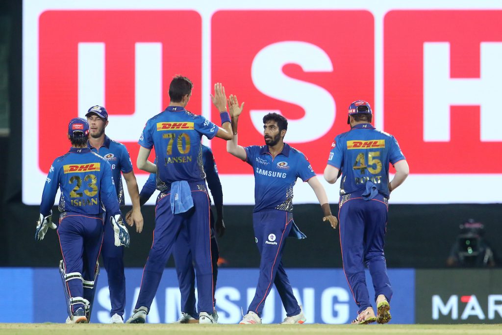 ग्लेन म्याक्सवेल २८ बलमा ३ चौका र २ छक्का सहित ३९ रनमा क्याच आउट भए । म्याक्सवेललाई दक्षिण अफ्रिका युवा तीव्र गतिका बलर मार्को जानसेनले क्रिस लिनबाट क्याच आउट गराएका थिए । मुम्बईका जस्प्रित बुमराहले ४ ओभरमा २६ रन खर्चेर २ विकेट लिए । मार्को जानसेनले ४ ओभरमा २८ रन खर्चेर २ विकेट लिए । क्रुनाल पान्ड्या र ट्रेन्ट बोल्टले १-१ विकेट लिए ।