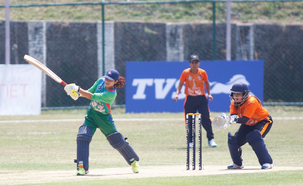 स्पिनर करुणा भण्डारीको आठौं ओभरको तेस्रो बलमा डली भट्ट पनि फुलटस बलमा १४ रनमा सहज कटएण्ड बोल्ड आउट हुन पुगेकी थिइन् । डलीले १२ बलमा १ चौका र १ छक्का प्रहार गरिन् । कविता कुँवर १५ बलमा २ चौका सहित १३ रनमा क्याच आउट भइन् । मध्यगतिकी बलर सुष्मा श्रेष्ठले सुनिता लोहारलाई शून्यमा बोल्ड आउट गरिन् । कविता जोशी ३, ऋतु कनोजिया ४ र मञ्जु बोगटी ३ रनमा आउट भए ।