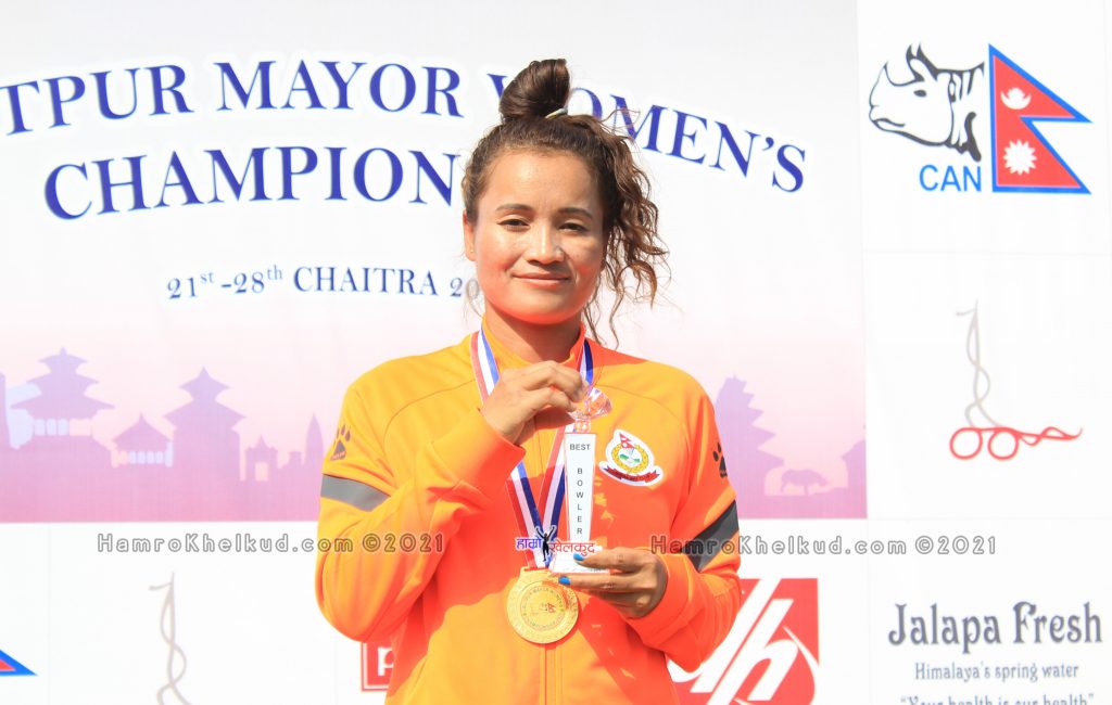 काठमाडौं (हाम्रो खेलकुद) – नेपाल एपिएफ क्लबकी कप्तान सीता रानामगर ललितपुर मेयर वुमन्स च्याम्पियनसिप–२०७७ टि२० क्रिकेट प्रतियोगिता सर्वोत्कृष्ट खेलाडी चुनिएकी छिन् ।
