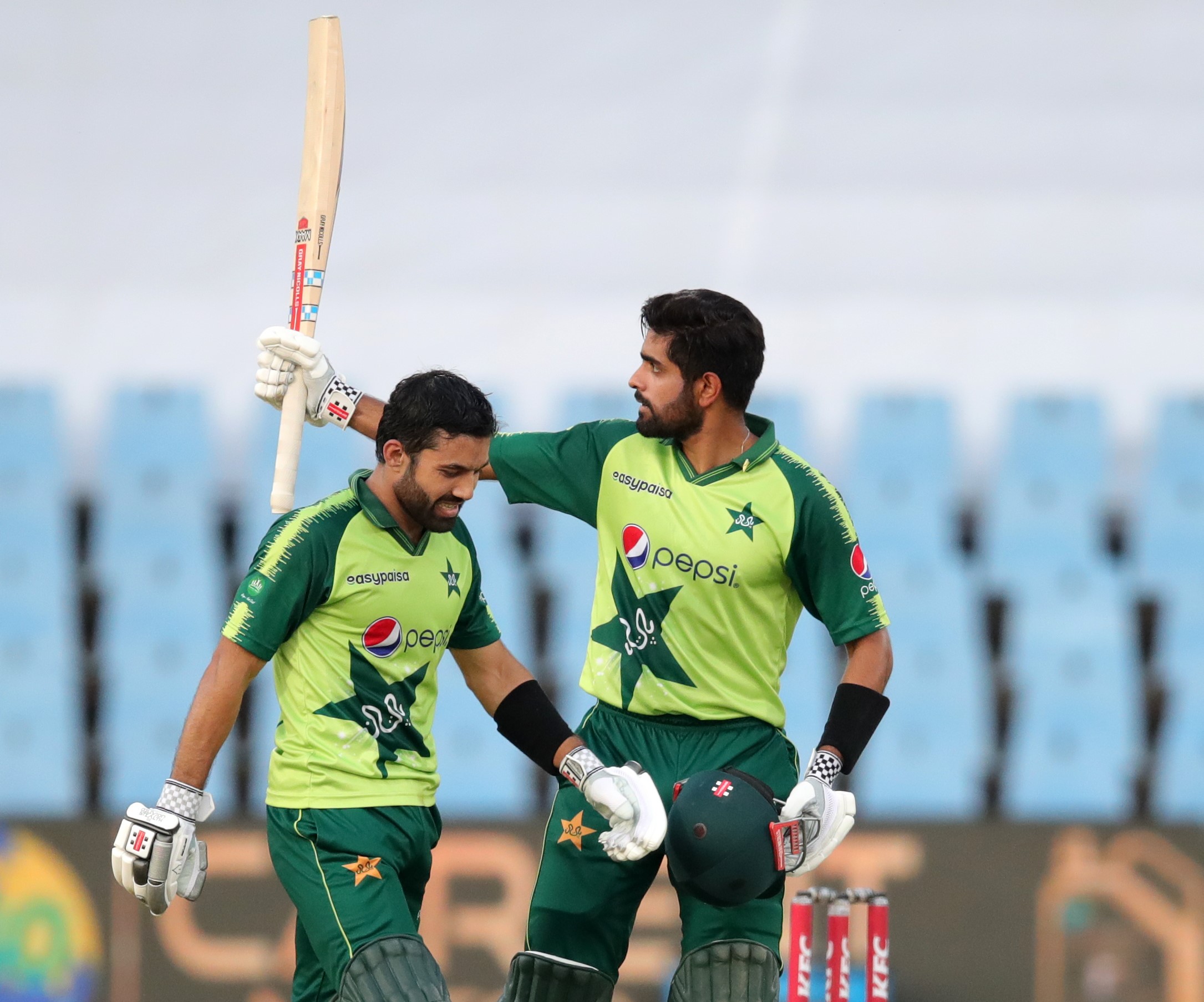 अर्का ओपनर मोहम्मद रिजवान ४७ बलमा ५ चौका र २ छक्का सहित ७३ रनमा अविजित रहे । पहिलो विकेटका लागि बाबर र रिजवानले १७.४ ओभरमा १ सय ९७ रनको उत्कृष्ट कीर्तिमानी साझेदारी गरेपछि विशाल लक्ष्य पाकिस्तानले सहजै पूरा गरेको हो । जुन पाकिस्तानका ब्याट्सम्यानले टि२० आई मा गरेको कुनैपनि विकेटका लागि उच्च साझेदारीमा हो ।