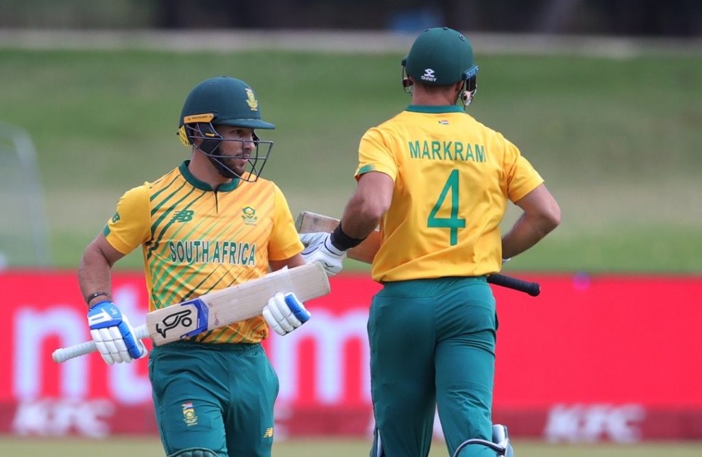 त्यसअघि टस हारेर पहिला ब्याटिङ थालेको दक्षिण अफ्रिका निर्धारित २० ओभरमा ५ विकेट गुमाउँदै २ सय ३ रन बनाएको थियो । दक्षिण अफ्रिका ओपनर एडेन माक्ररम ३१ बलमा ६ चौका र ४ छक्का सहित सर्वाधिक ६३ रन बनाए । अर्का ओपनर जानेमान मलानले ४० बलमा ५ चौका र २ छक्का सहित ५५ रनको योगदान दिए । पहिलो विकेटका लागि माक्ररम र मलानले १ सय ८ रनको साझेदारीका साथ राम्रो सुरुवात दिलाएका थिए । रास्सी भान डर डुसेन ३४ रनमा अविजित रहँदा जर्ज लिन्डे २२, हेनरिक क्लासेन १५ र एन्डिले फहलुकवयो ११ रनमा आउट भए ।