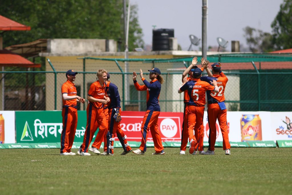स्पिनर फिलिपे बोइससेवेनको बलमा ठूलो सट खेलेका आसिफ लङअफमा पाउल भान मिकेरेनले उत्कृष्ट क्याच लिएपछि नेपालले पहिलो विकेट गुमाएको थियो । आसिफले ८ बलमा २ छक्का र १ चौका सहित १६ रन बनाए ।