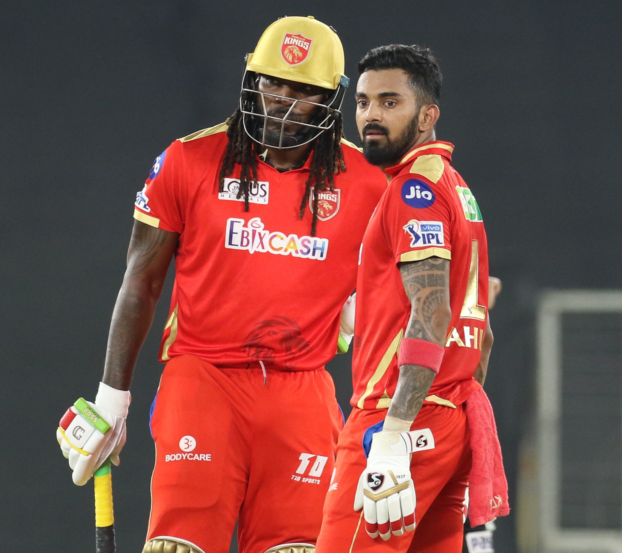 दोस्रो विकेटका लागि राहुल र क्रिस गेलले ४५ बलमा ८० रनको साझेदारी गर्दै विशाल योगफलको सम्भावना देखाएका थिए । तर ११ औं ओभरको चौथो बलमा ड्यानियल साम्सको बाउन्सर बलमा गेल एवि डिभिलियर्सबाट ४६ रनमा क्याच आउट हुन पुगेका थिए ।
