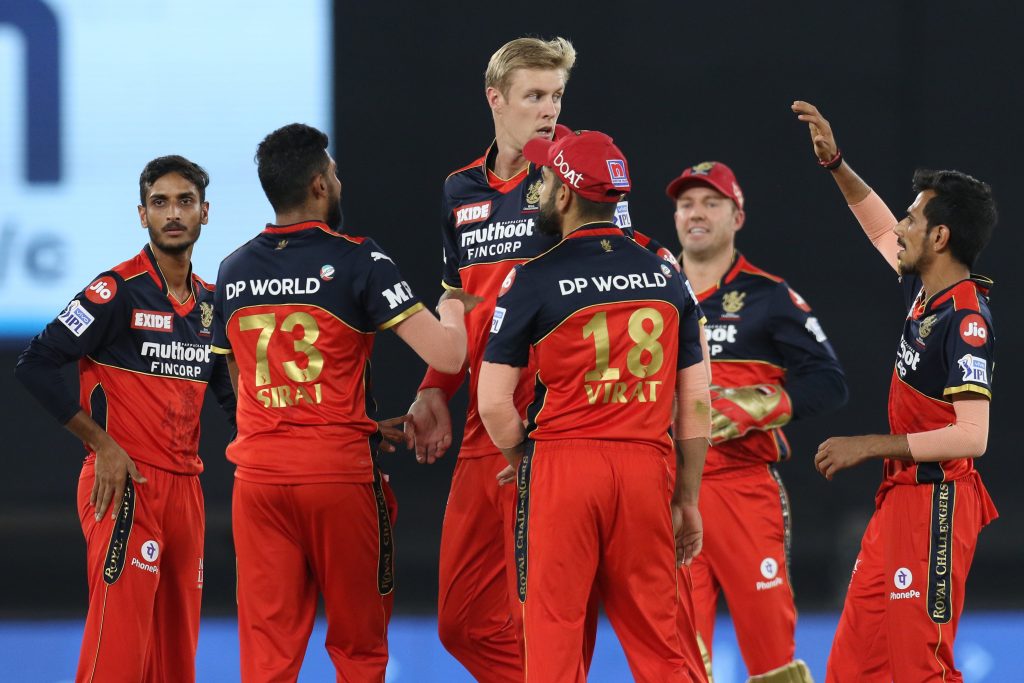 बेंगलोरका तीव्र गतिका बलर काइल जामिसनले ३ ओभरमा ३२ रन खर्चेर २ विकेट लिए । युजभेन्द्र चहल, ड्यानियल साम्स, शाहवाज अहमदले १–१ विकेट लिए ।