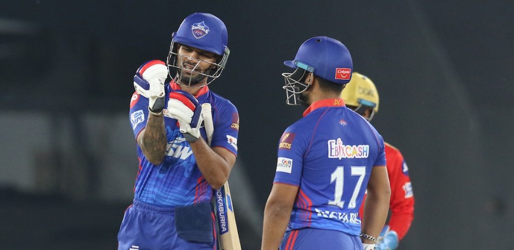 दिल्लीका ओपनर शिखर धवन ४७ बलमा ६ चौका र २ छक्का सहित ६९ रनमा अविजित रहे । दिल्लीलाई ओपनर पृथ्वी शा र शिखर धवनले ६.१ ओभरमा ६३ रन जोड्दै राम्रो सुरुवात दिलाएका थिए । स्पिनर हरप्रीत ब्रारले आफ्नो स्पेलको पहिलो बलमै शालाई ३९ रनमा बोल्ड गर्दै पन्जाबलाई पहिलो सफलता दिलाएका थिए ।