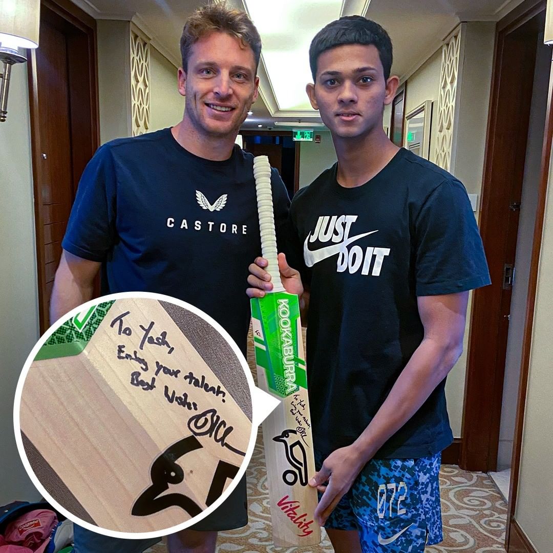 आइपिएल मंगलबार अनिश्चित समयको लागि स्थगित भएसँगै इंग्ल्यान्ड फर्किनु अघि बटलरले बटलरलाई आफ्नो विशेष ब्याट उपहार दिएका छन् । जटलरले दिएको ब्याटमा उनले हस्ताक्षर गरेका छन् । विश्वकप च्याम्पियन बटलर १९ वर्षिय जैसवालको प्रतिभाबाट प्रभावित हुँदै ब्याट उपहार दिएका हुन् । जारी सिजनमा यी खेलाडीले तीन खेलमासँगै साझेदारी गरेका थिए ।