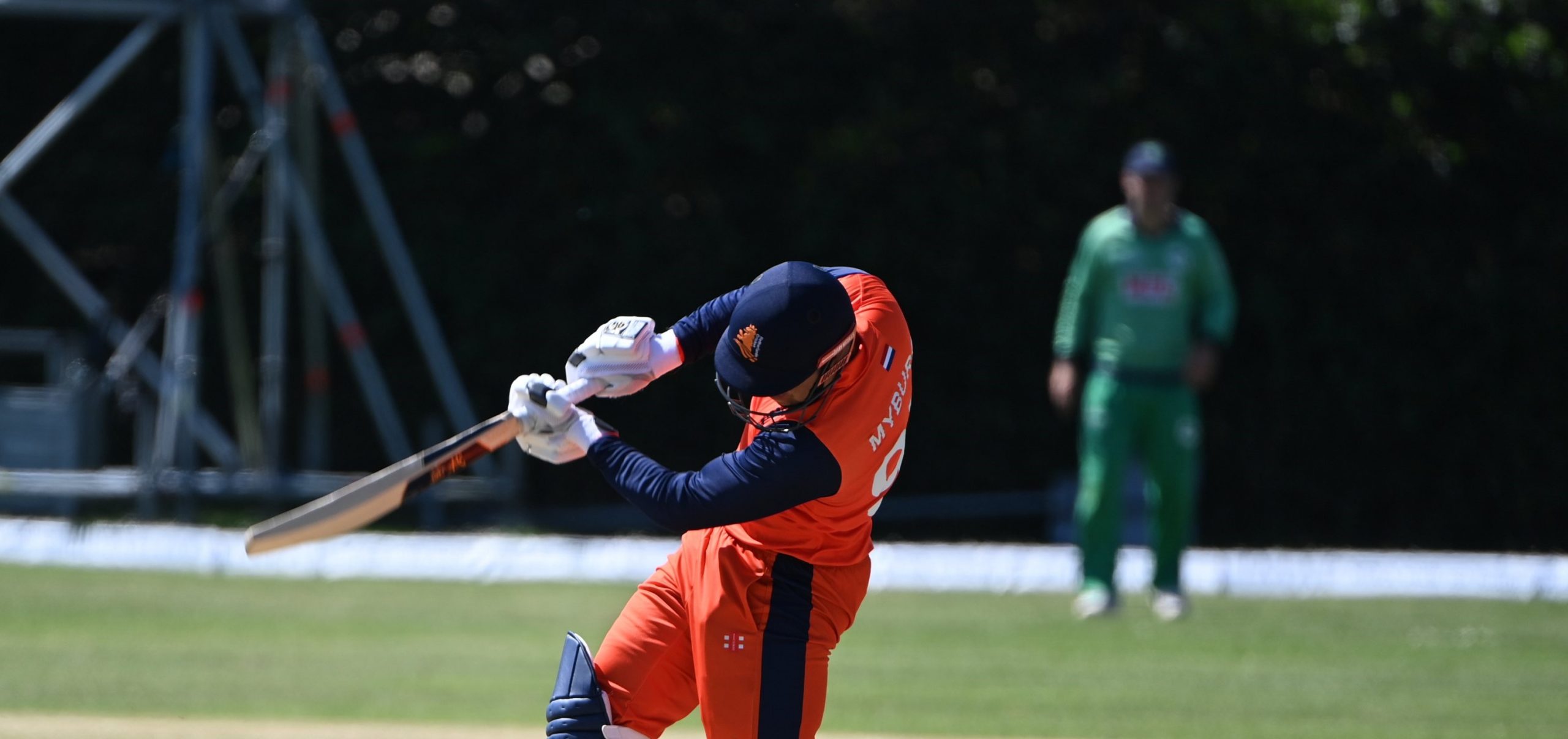 जितका लागि १ सय ६४ रनको मध्यम विजयी लक्ष्य पछ्याएको नेदरल्यान्ड्सले ४५.५ ओभरमा ६ विकेटको क्षतिमा पूरा गर्यो । नेदरल्यान्ड्सको जितमा ओपनर स्टिफन माईबर्गले १ सय ११ बलमा ६ चौका र ३ छक्का सहित सर्वाधिक ७४ रनको इनिङ खेले । बास डी लिडे १८ रन जोडे । ओपनर म्याक्स ओडाउड ४९ बलमा ५ चौका सहित ३६ रन जोड्दै राम्रो सुरुवात दिलाएका थिए । स्टिफन र म्याक्स ओडाउडले पहिलो विकेटका लागि ६६ रनको साझेदारी गर्दै राम्रो सुरुवात दिलाएपछि नेदरल्यान्ड्स सहज जिततर्फ अघि बढेको थियो । १५ औं ओभरको चौथो बलमा सिमी सिंहले ओडाउडलाई बोल्ड गर्दै साझेदारी तोडेका थिए ।