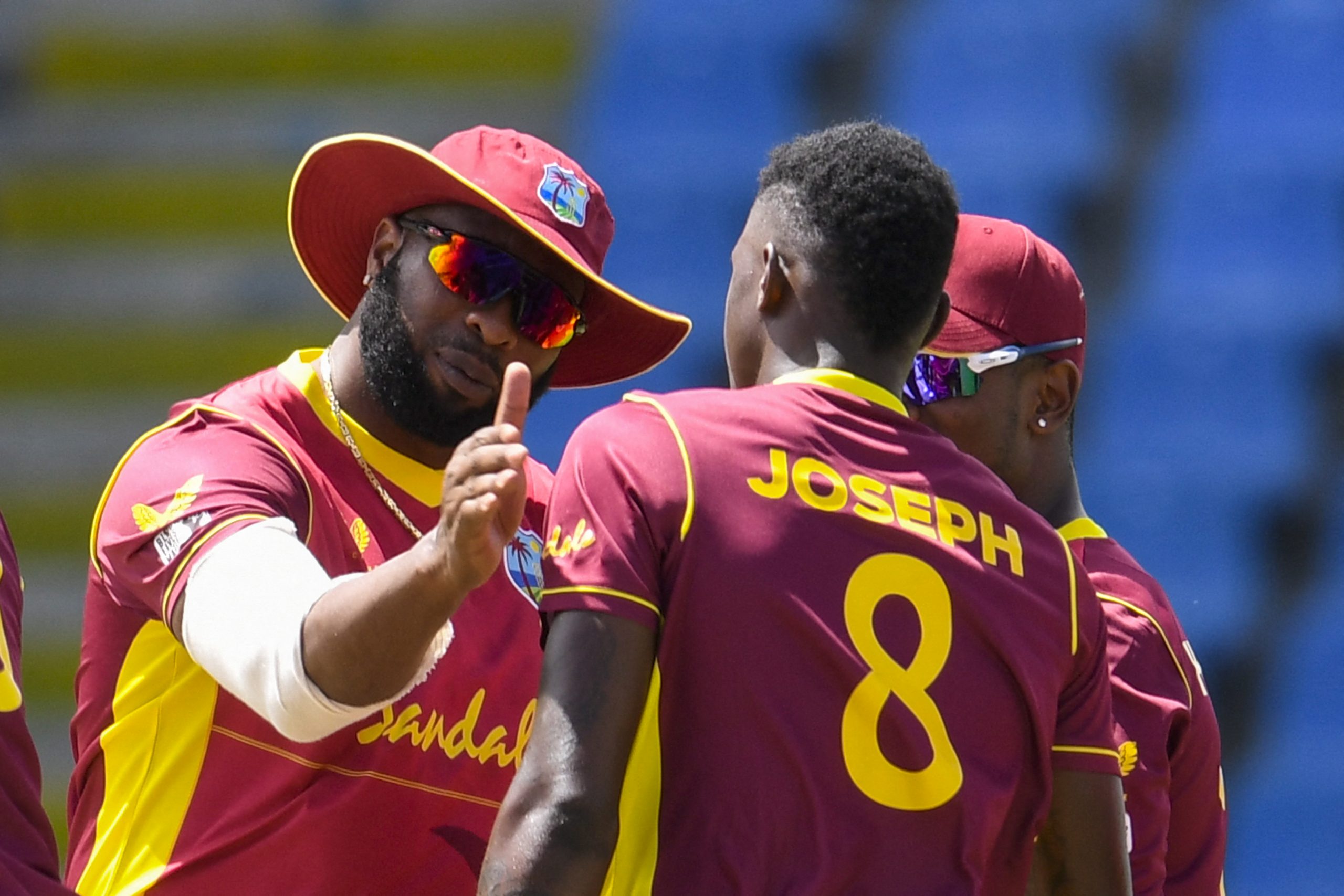 वेस्टइन्डिजको टोली : काइरन पोलार्ड (कप्तान), निकोलस पुरन (विकेटकिपर तथा उपकप्तान), फबियन एलेन, ड्वेन ब्राभो, शेल्डन कटरेल, फिडेल एडवार्ड्स, आन्द्रे फ्लेचर (विकेटकिपर), क्रिस गेल, शिम्रन हेटमायर, जेसन होल्डर, अकेल हुसेन, ओबेड म्याककोय, आन्द्रे रसेल, लेन्डन सिमन्स, केभिन सिन्क्लेयर, ओशान थोमस, इभिन लुइस र हेडेन वाल्श जुनियर