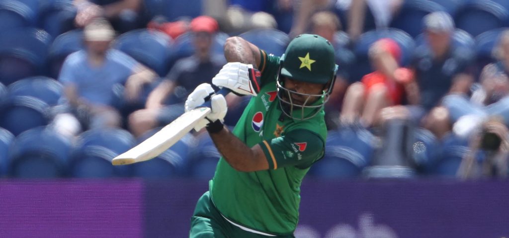त्यसअघि कार्डिफमा टस हारेर ब्याटिङ थालेको पाकिस्तान ३५.२ ओभरमा १ सय ४१ रनमा अल आउट भएको थियो । पाकिस्तानका ओपनर फखर जमानले ६७ बलमा ६ चौका सहित सर्वाधिक ४७ रनको योगदान दिए । पाकिस्तानका ६ खेलाडीले दोहोरो अंकमा रन बनाउन सकेनन् । पाकिस्तानले सुरुवाती तीन बलमै प्रमुख दुई ब्याट्सम्यान गुमाएको थियो । तीव्र गतिका बलर सकिब मोहम्मदको पहिलो ओभरको पहिलो बलमै ओपनर इमाम उल हक एलबिडब्लू आउटको शिकार बन्न पुगे । एक बलपछि कप्तान बाबर आजम आउटसाइट एज लागेर सेकेन्ड स्लिपमा ज्याक क्रलीबाट क्याच आउट हुँदा पाकिस्तानको खातामा रन थिएन ।