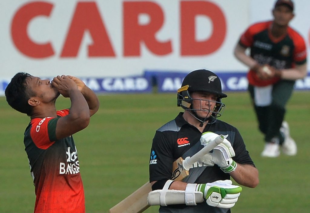बंगलादेशका तीव्र गतिका बलर मुश्ताफिजुर रहमानले २.५ ओभरमा १३ रन खर्चेर ३ विकेट लिए । नासुम अहमद, मोहम्मद सैफुद्दिन र सकिब अल हसनले २–२ विकेट लिए । माहेदी हसनले एक विकेट लिए । यसअघि टि२० आईमा २०१४ मा श्रीलंकाविरुद्ध न्युजिल्यान्ड ६० रनमै अल आउट भएको थियो । दोस्रो खेल शुक्रबार हुने छ ।