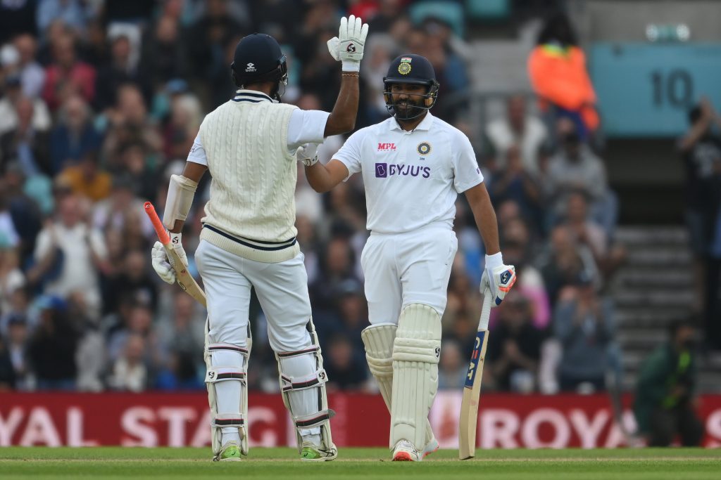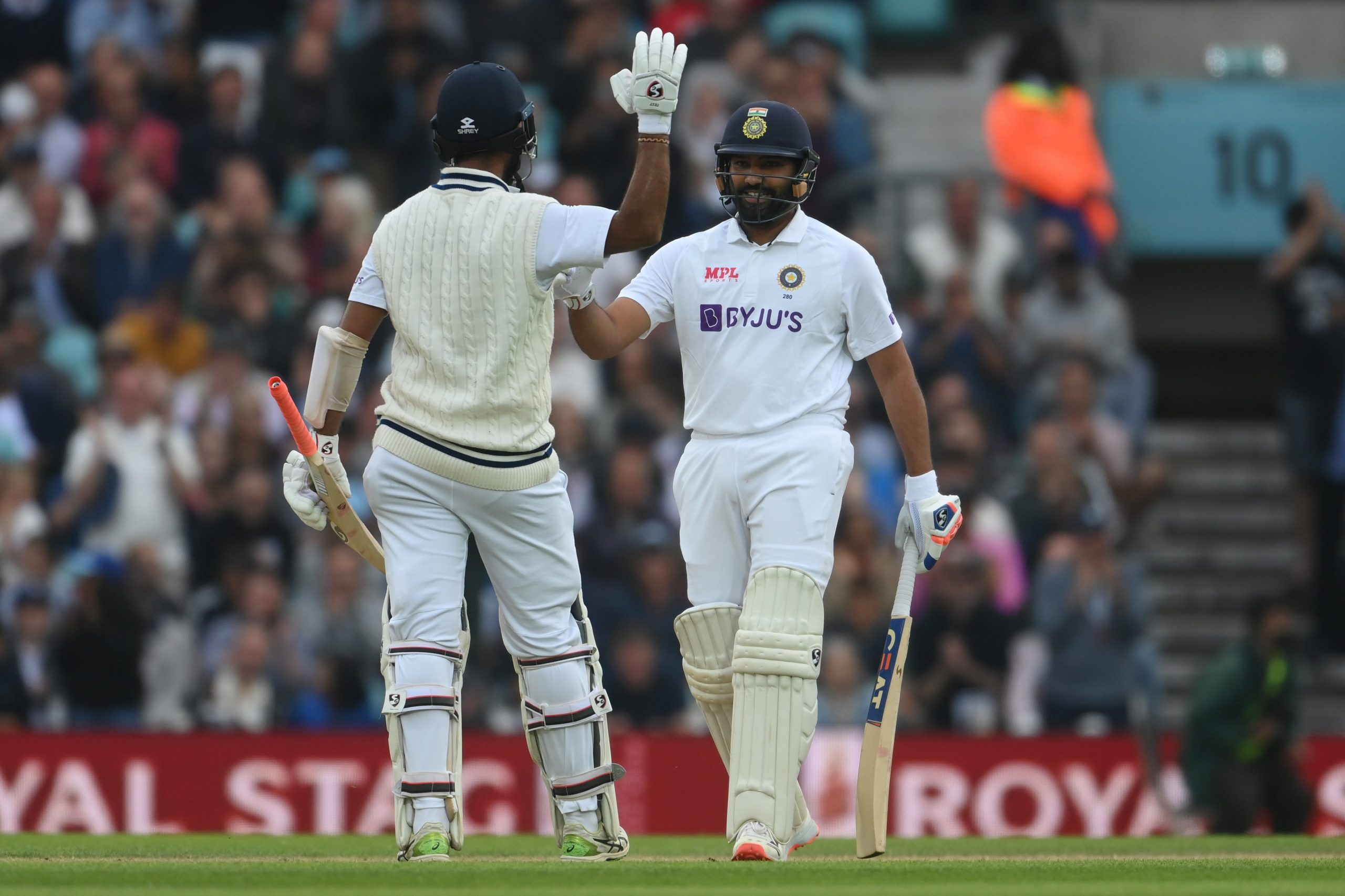 चेतेश्वर पुजारा १ सय २७ बलमा ९ चौका सहित ६१ रनमा क्याच आउट भए । भारतलाई ओपनर रोहित र लोकेश राहुलले ८३ रनको साझेदारी गर्दै राम्रो सुुरुवात दिलाएका थिए । जेम्श एन्डरसनले जोनी बेयरस्टोबाट राहुललाई ४६ रनमा क्याच गराउँदै साझेदारी तोडेका थिए । राहुलले १ सय १ बलमा ६ चौका र १ छक्का प्रहार गरे ।